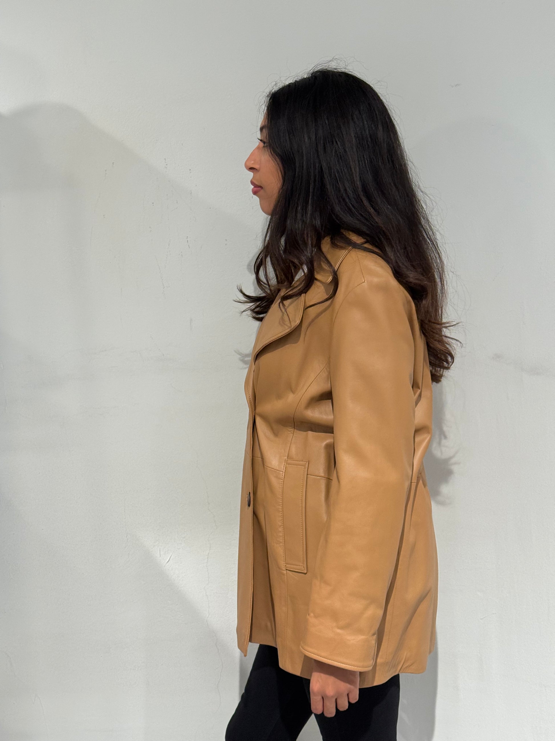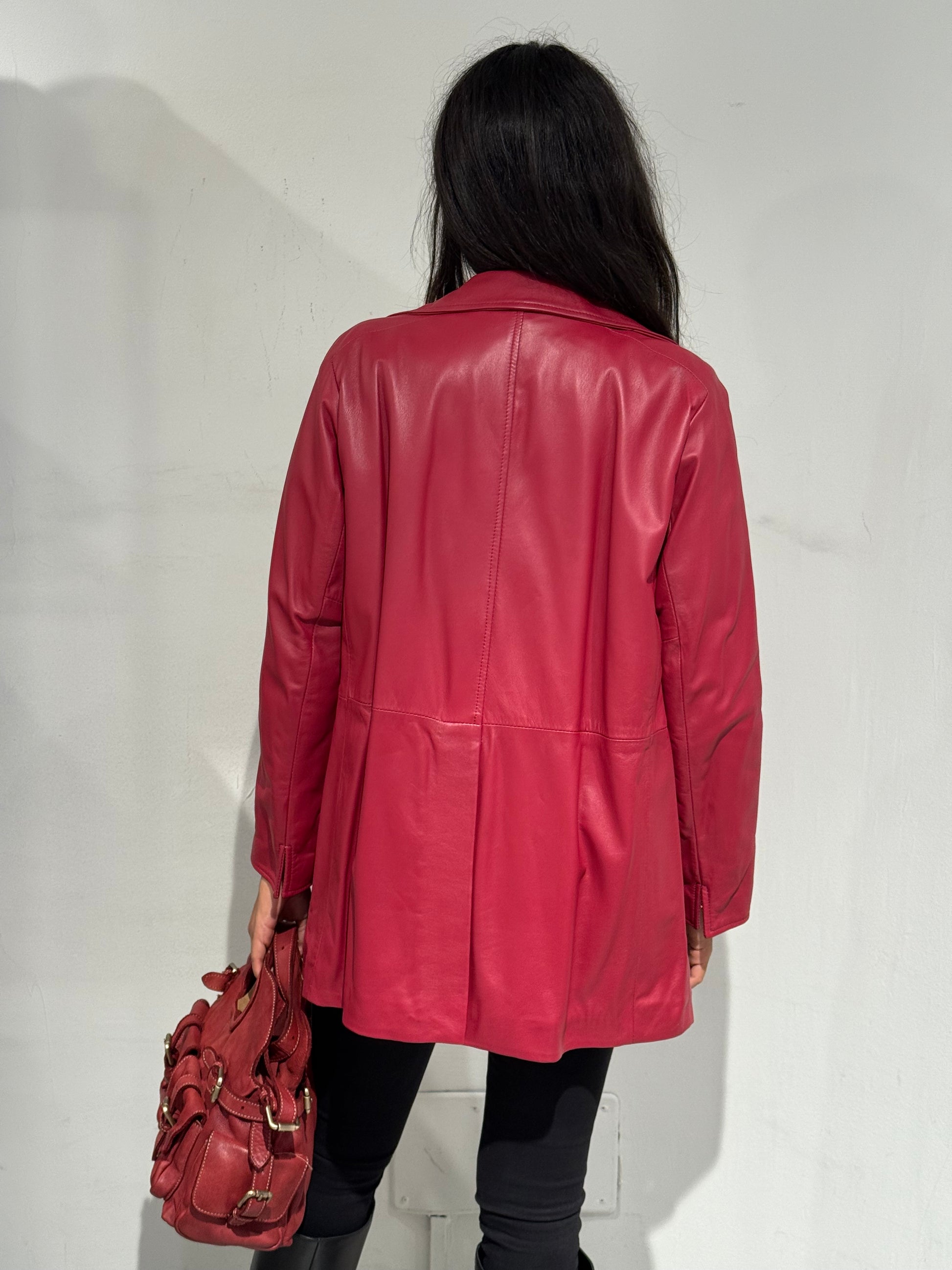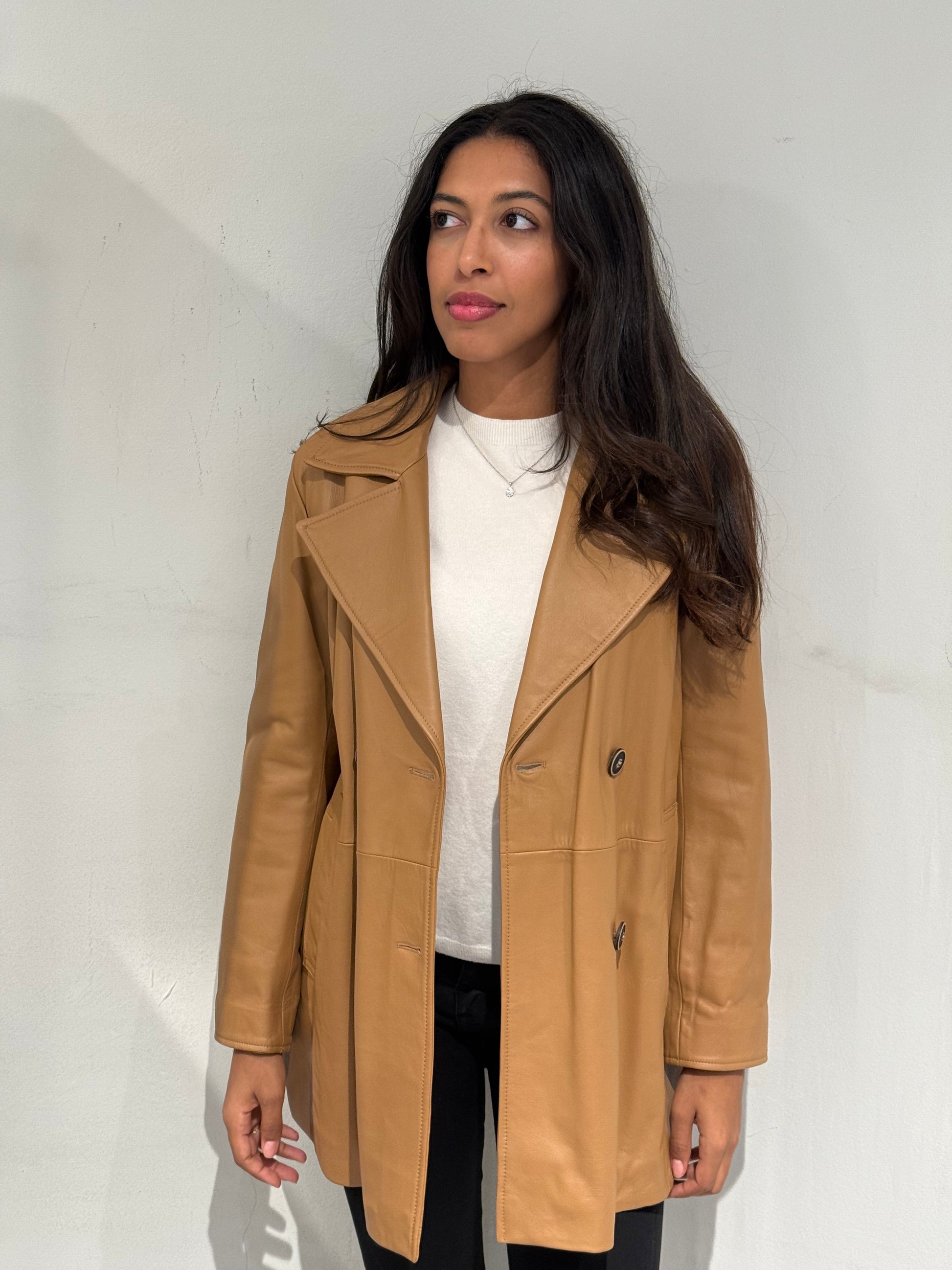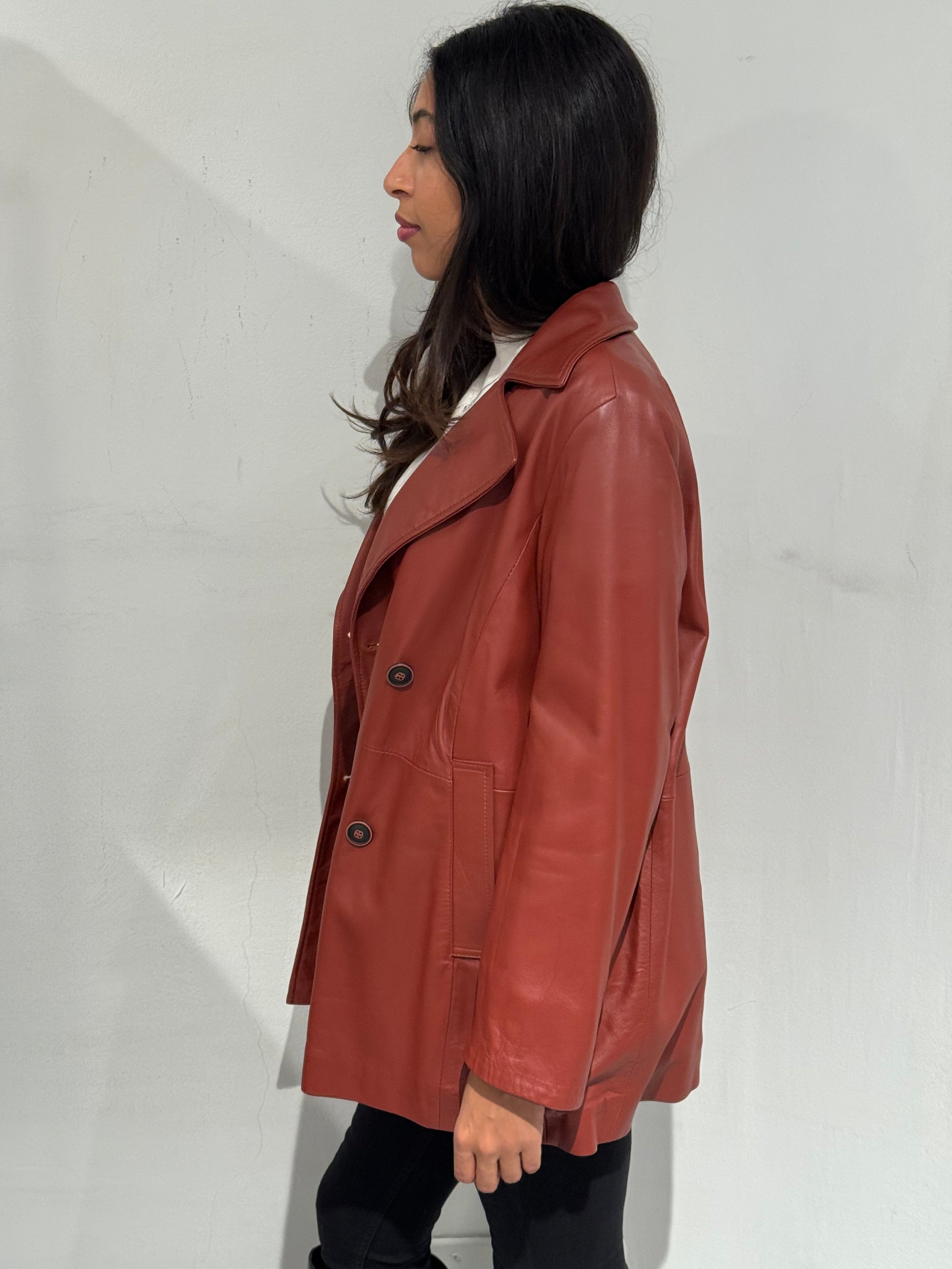 Giubbotto doppiopetto in vera pelle dal design elegante e contemporaneo. Realizzato in Italia con materiali di alta qualità, unisce la morbidezza e resistenza della pelle naturale a un taglio raffinato che valorizza la figura. Il colore caldo e la linea leggermente svasata lo rendono un capo versatile, perfetto sia per look casual che più sofisticati.