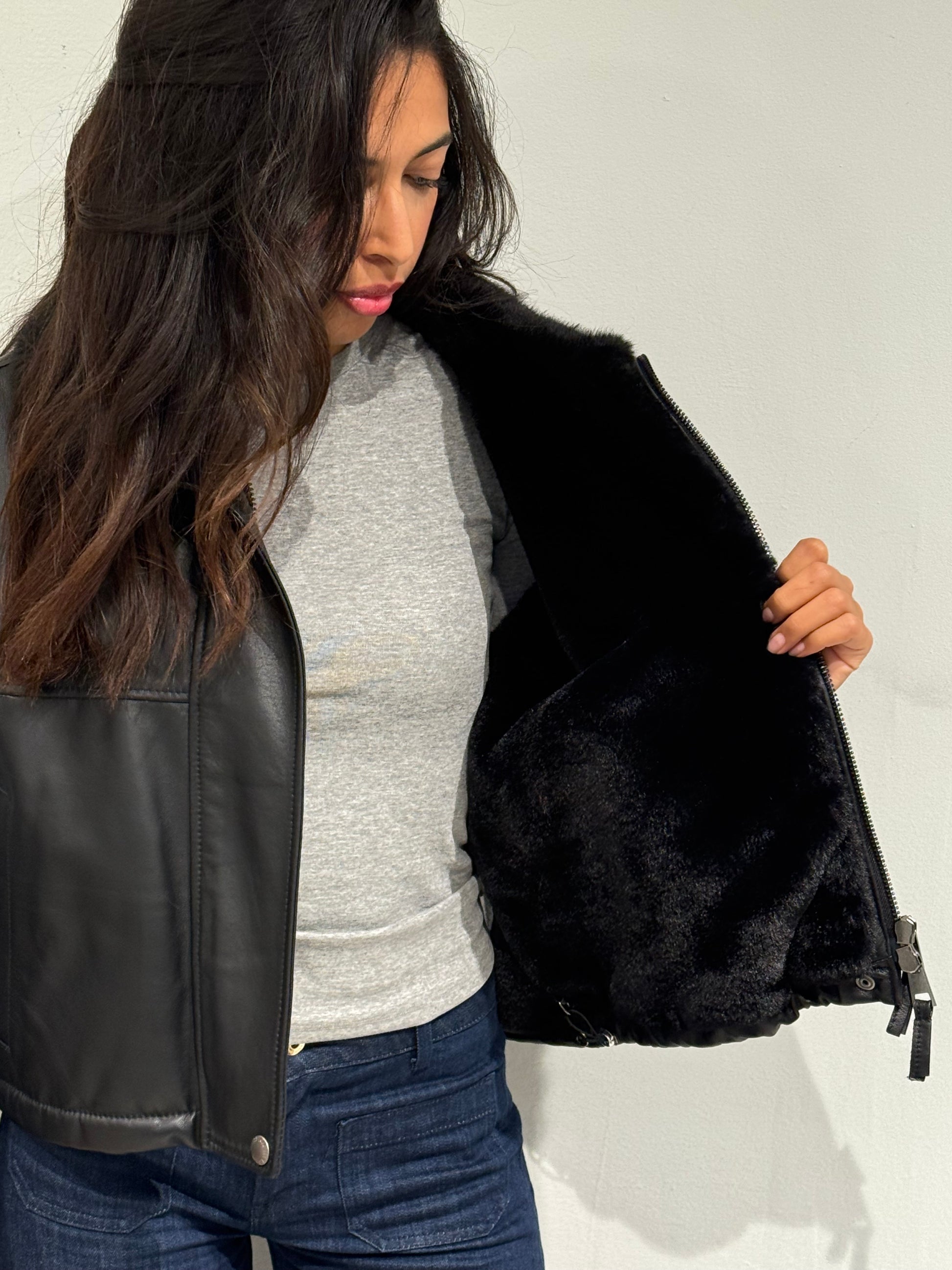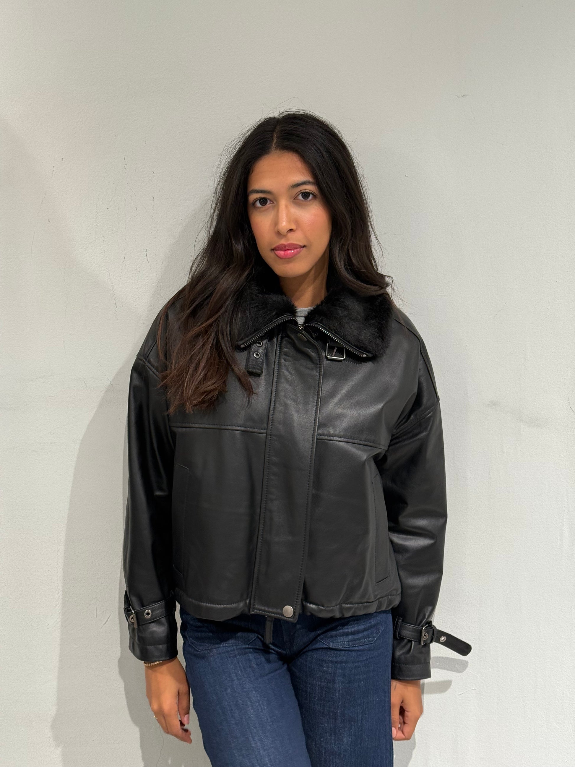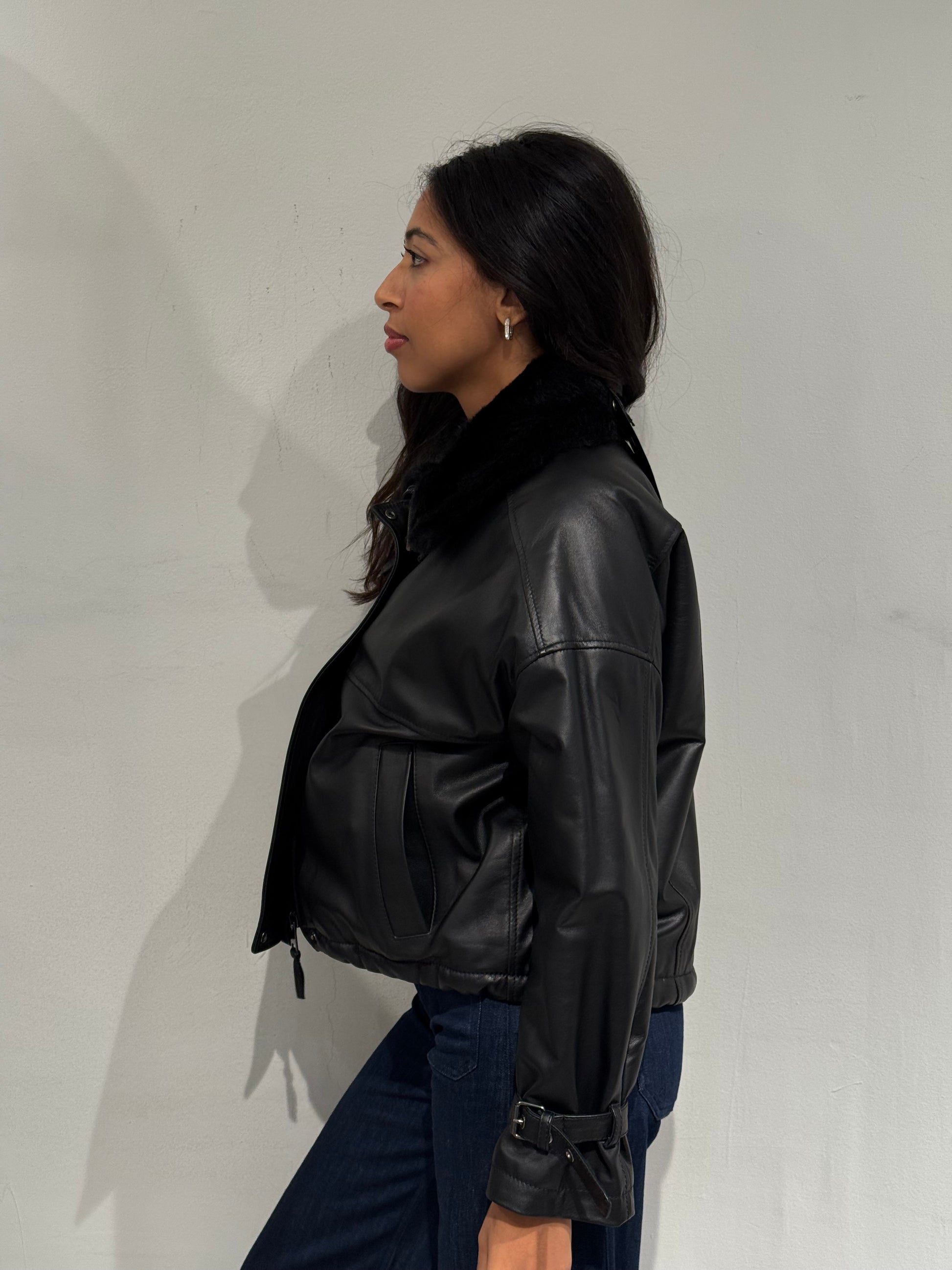 Giubbotto in vera pelle guanteria Made in Italy firmato Myskin, caratterizzato da un design moderno e grintoso. L’interno è imbottito con morbida pelliccia ecologica, che garantisce calore e comfort durante la stagione fredda. Il collo, anch’esso rifinito con pelliccia ecologica, aggiunge un tocco sofisticato e contemporaneo.
